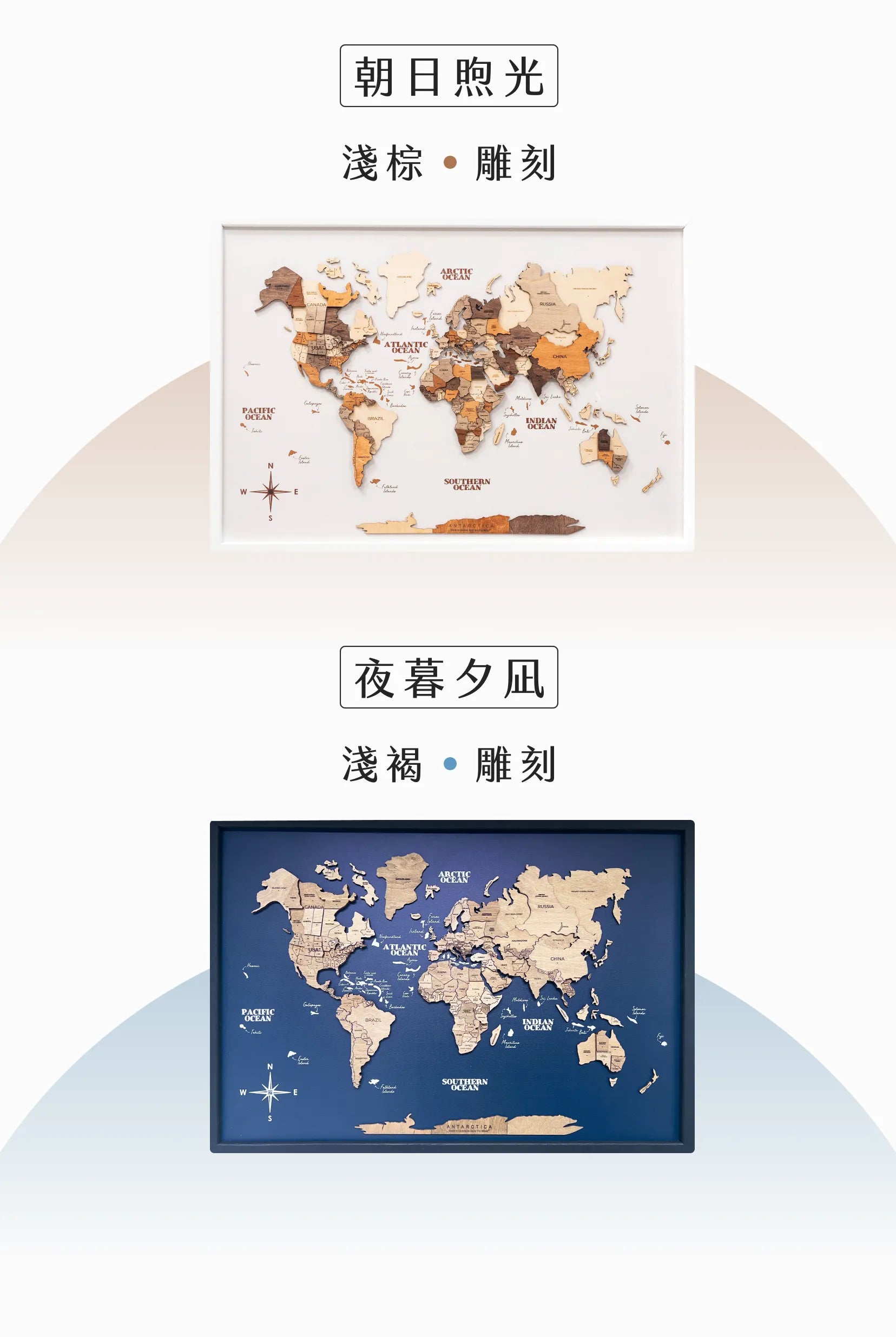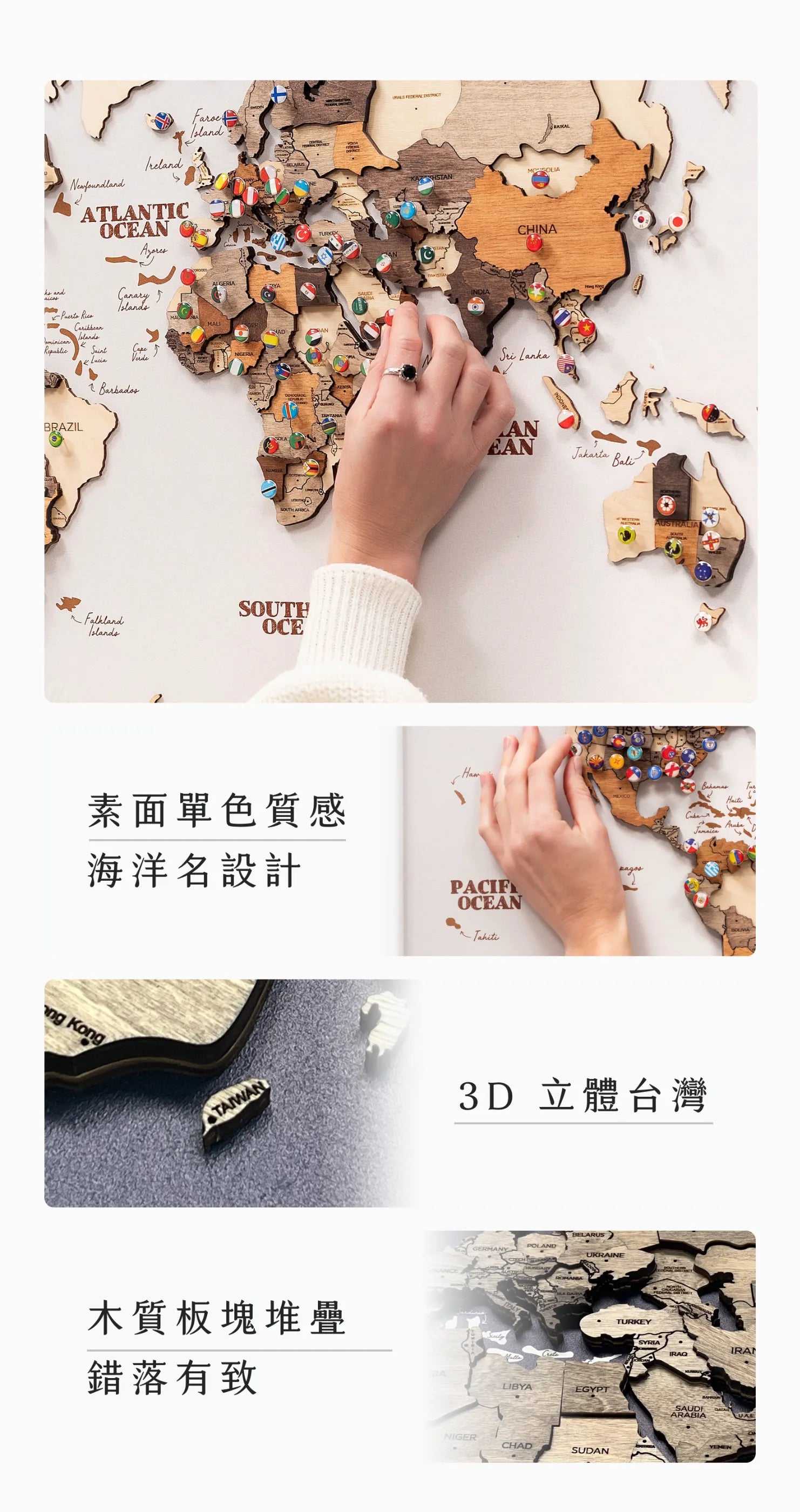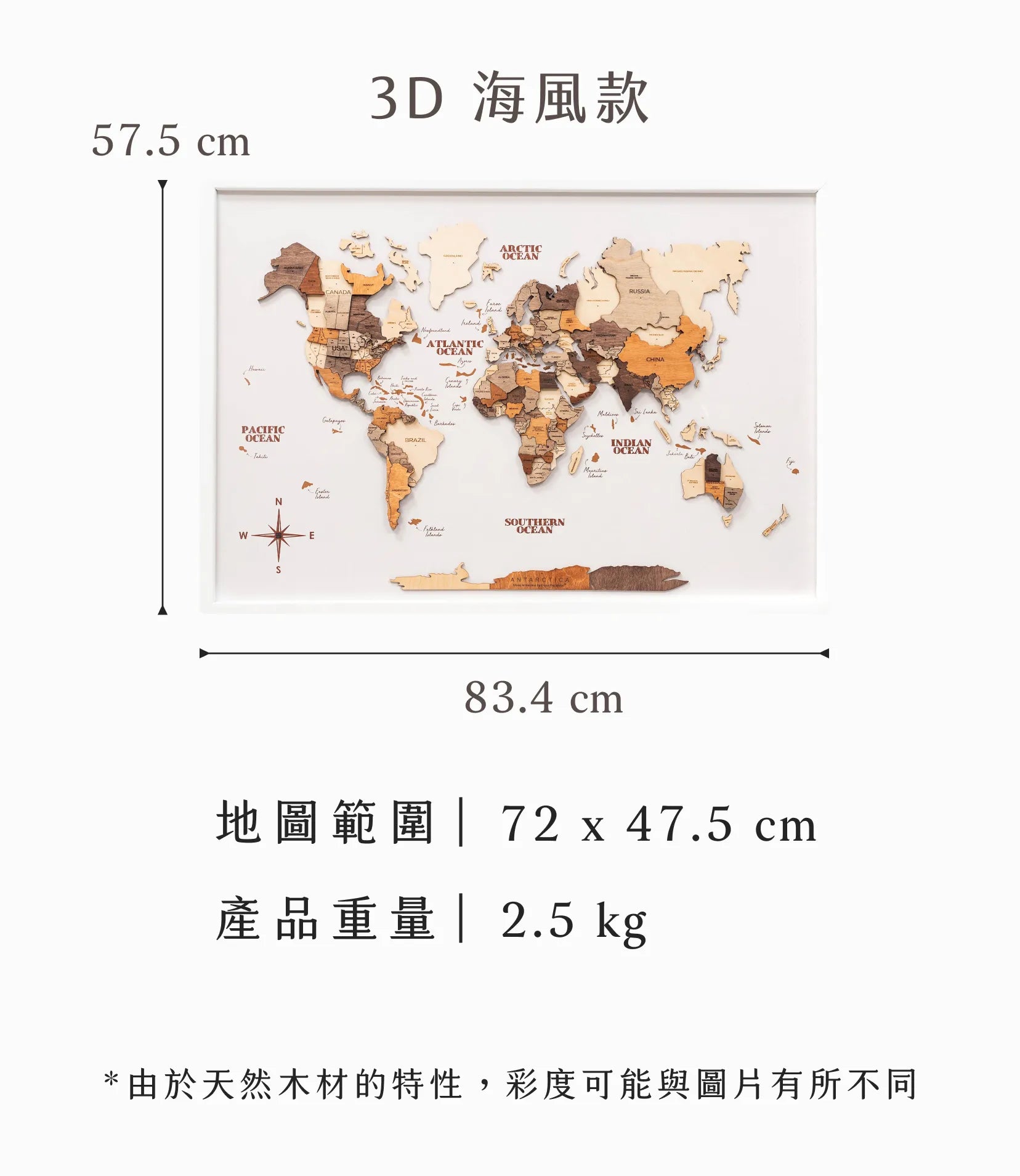 木質世界地圖 - 3D 海風款